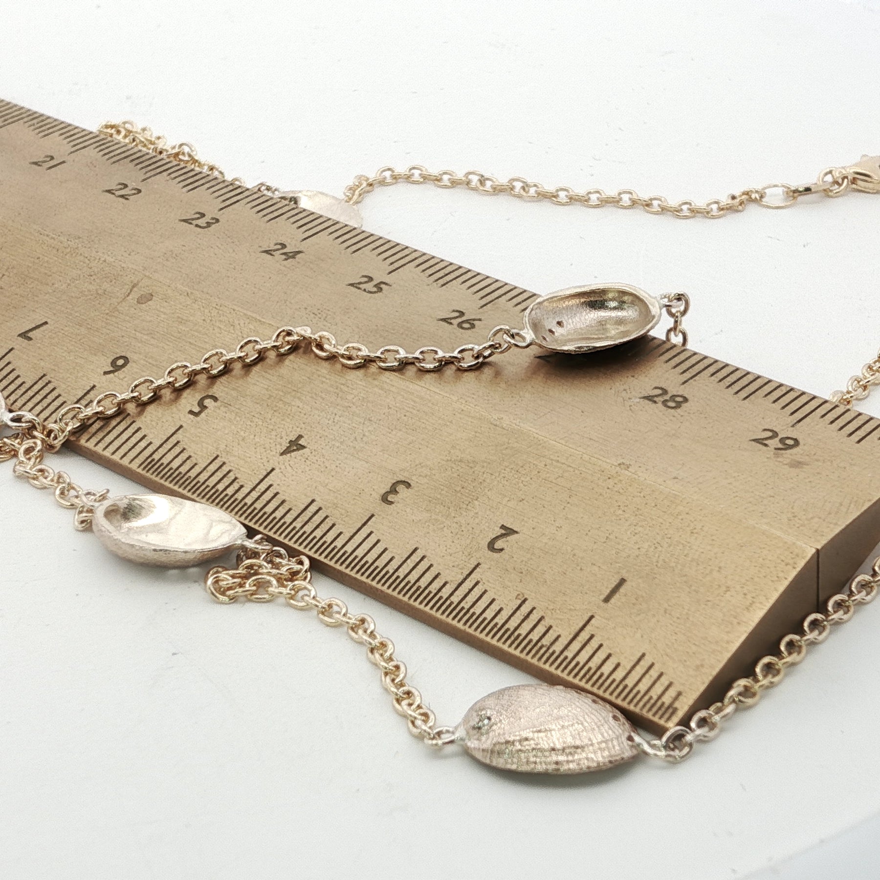 Inspired by the iridescent beauty of New Zealand’s native paua shell (Haliotis iris), the Haliotis Cascade Necklace celebrates ocean artistry in pure 9ct gold. Five finely detailed paua-inspired designs flow gracefully along a 50–55 cm adjustable chain, creating a luminous cascade that catches the light with every movement.