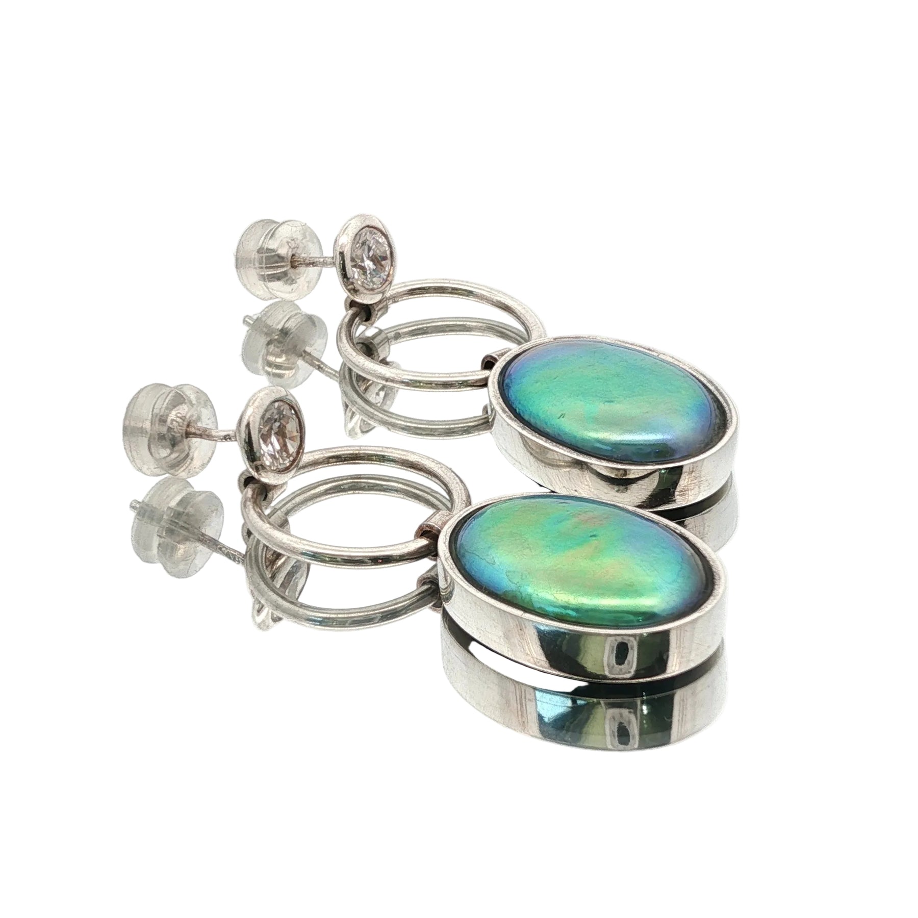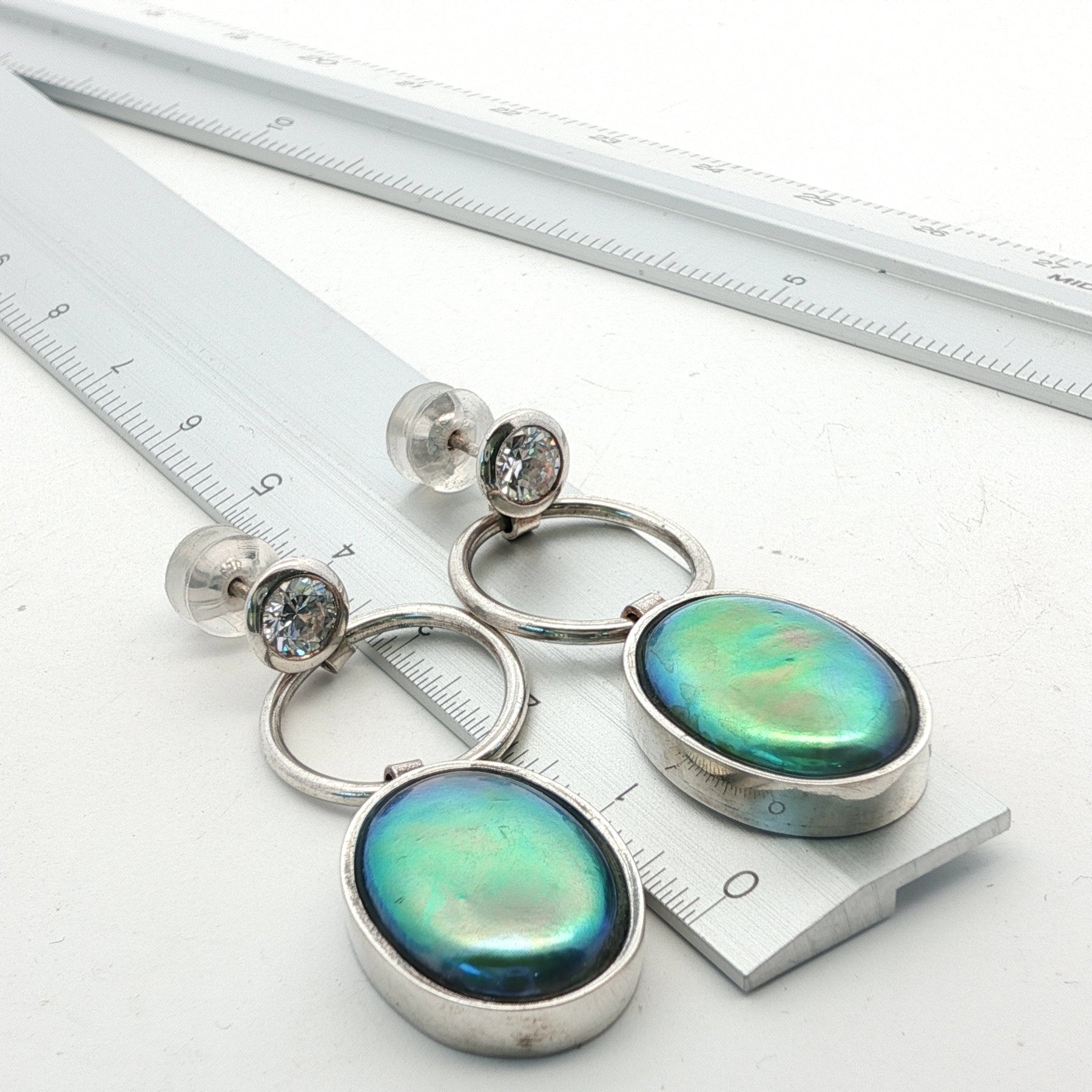 Hand-made Sterling Silver Oval Pearls and Cubic Zirconias Earrings 44mm