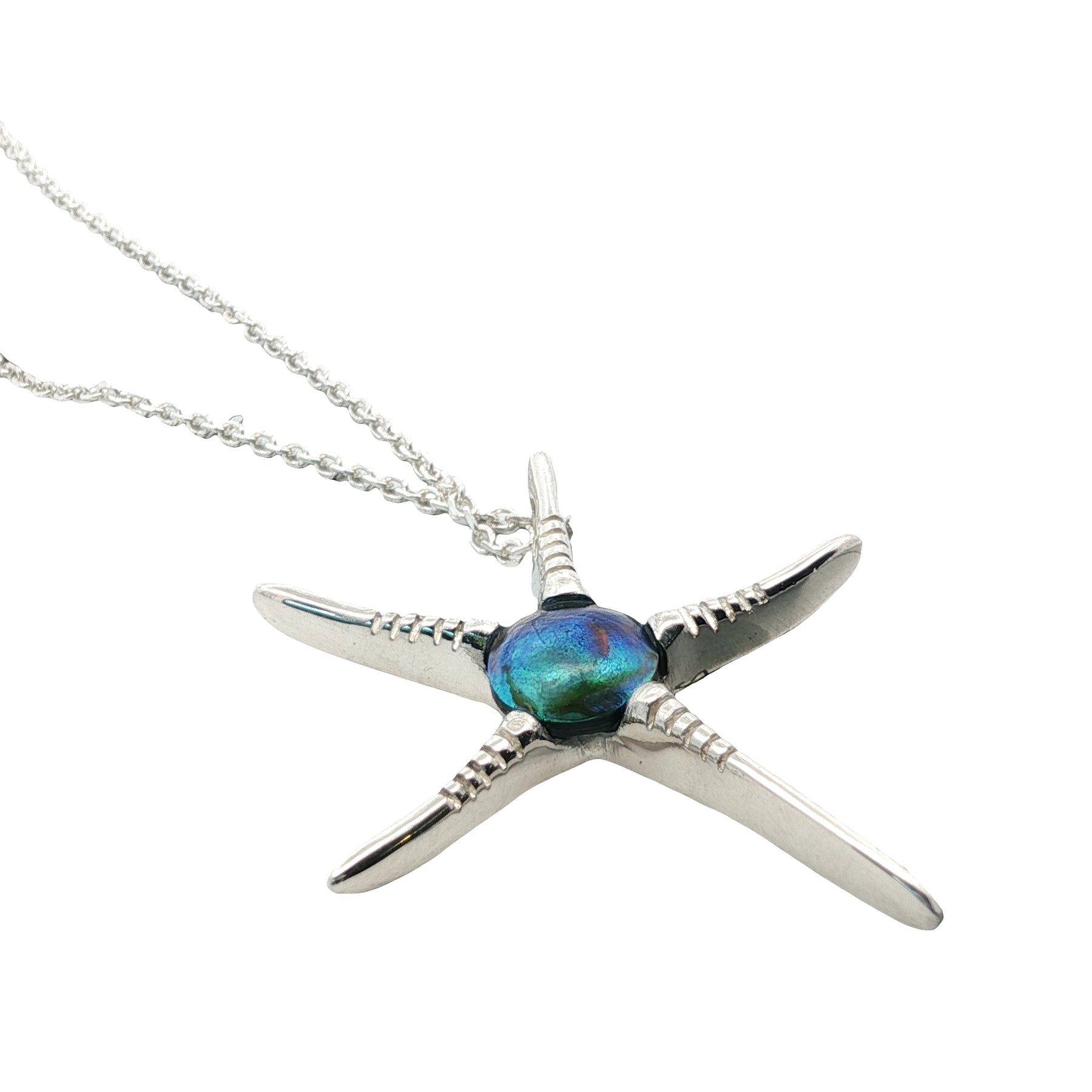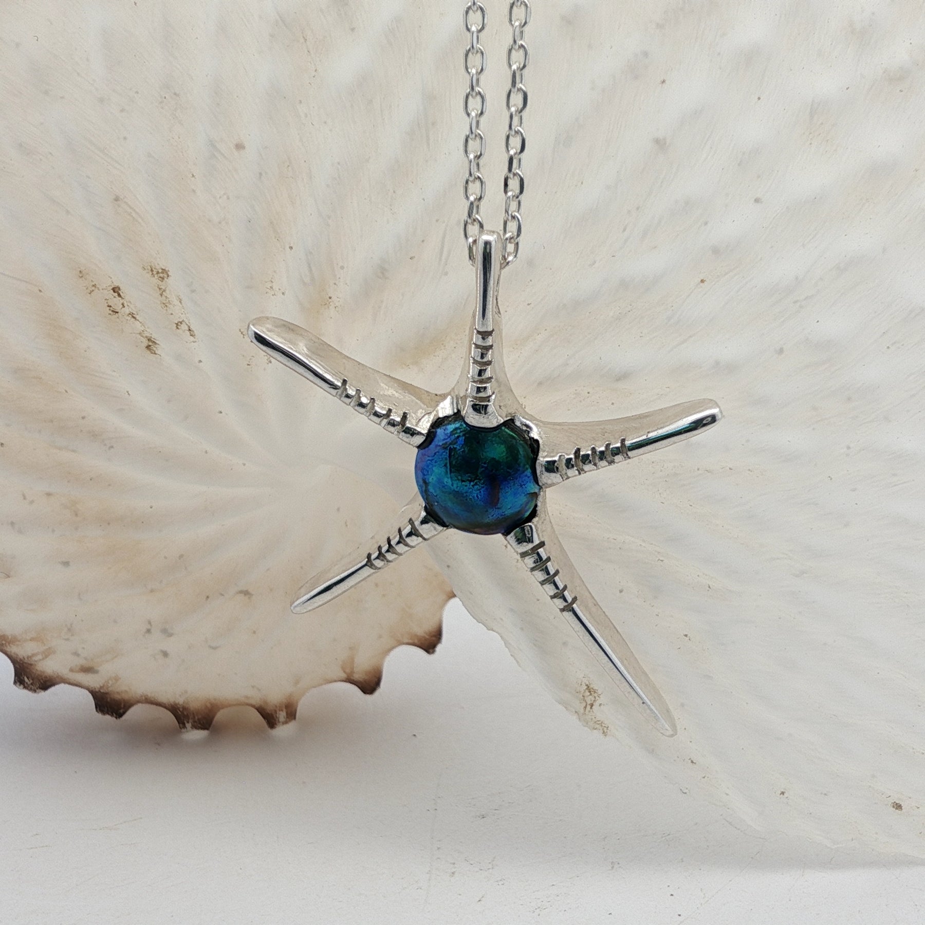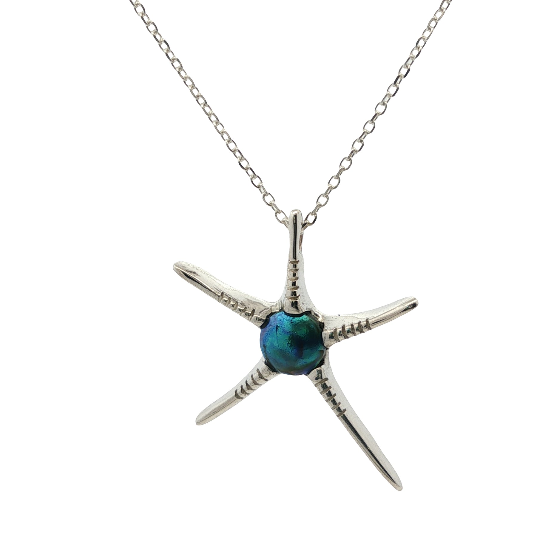 Now, suspended from a simple, elegant Sterling Silver Starfish Necklace, this blue pearl necklace becomes something timeless: a piece that catches light, shifts colour, and carries the quiet beauty of Arapaoa Island wherever you go.