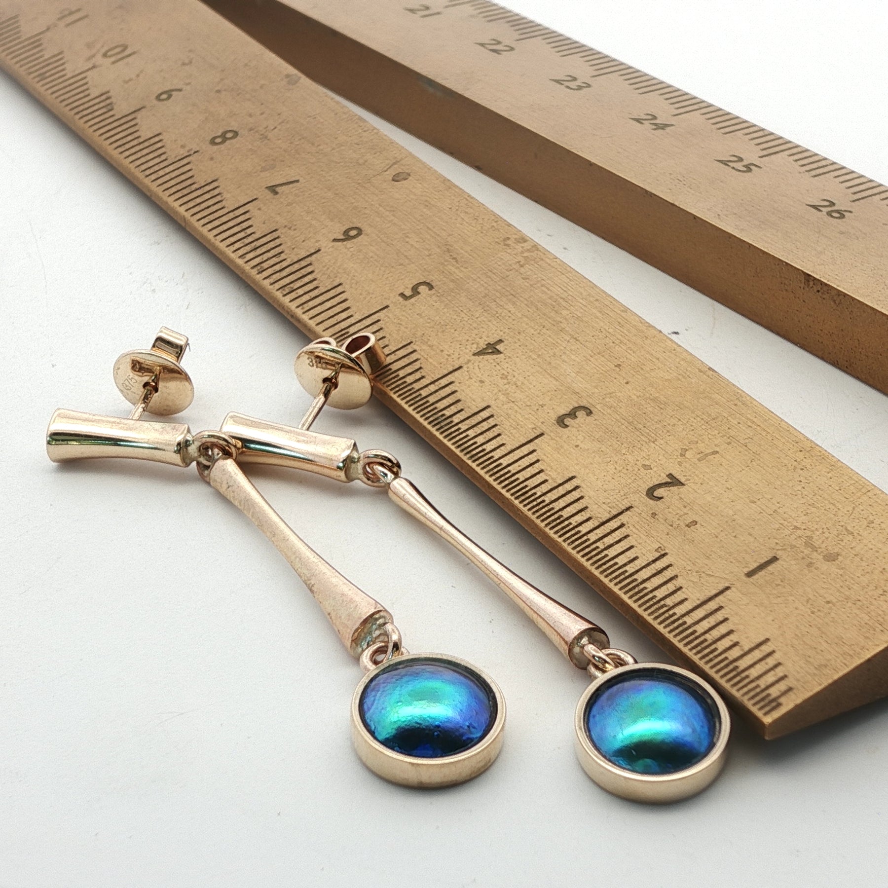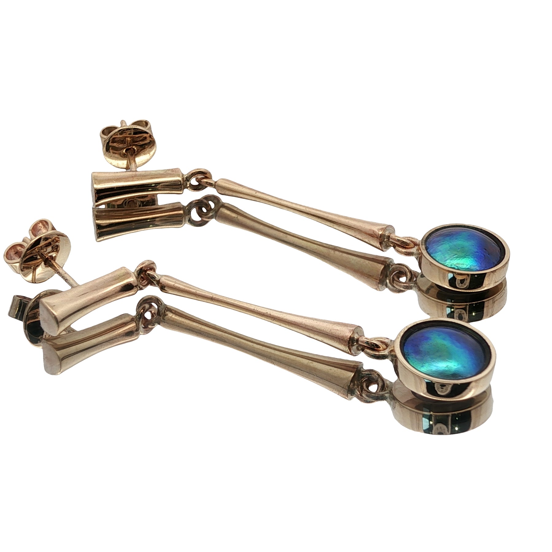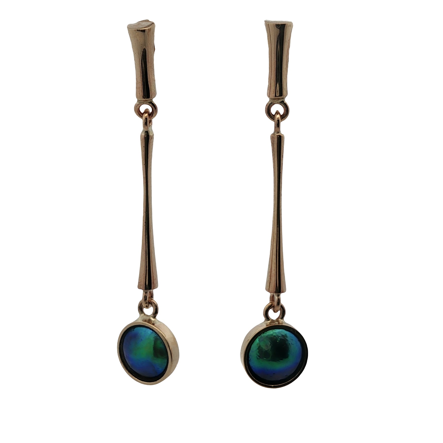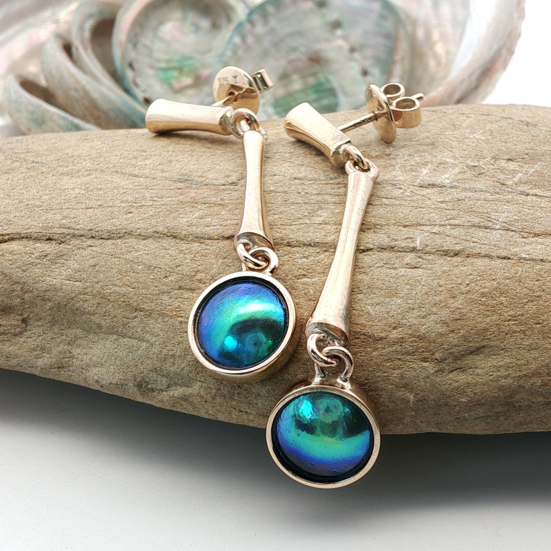 9ct Yellow Gold Paua Pearl Emerald Sea Earrings