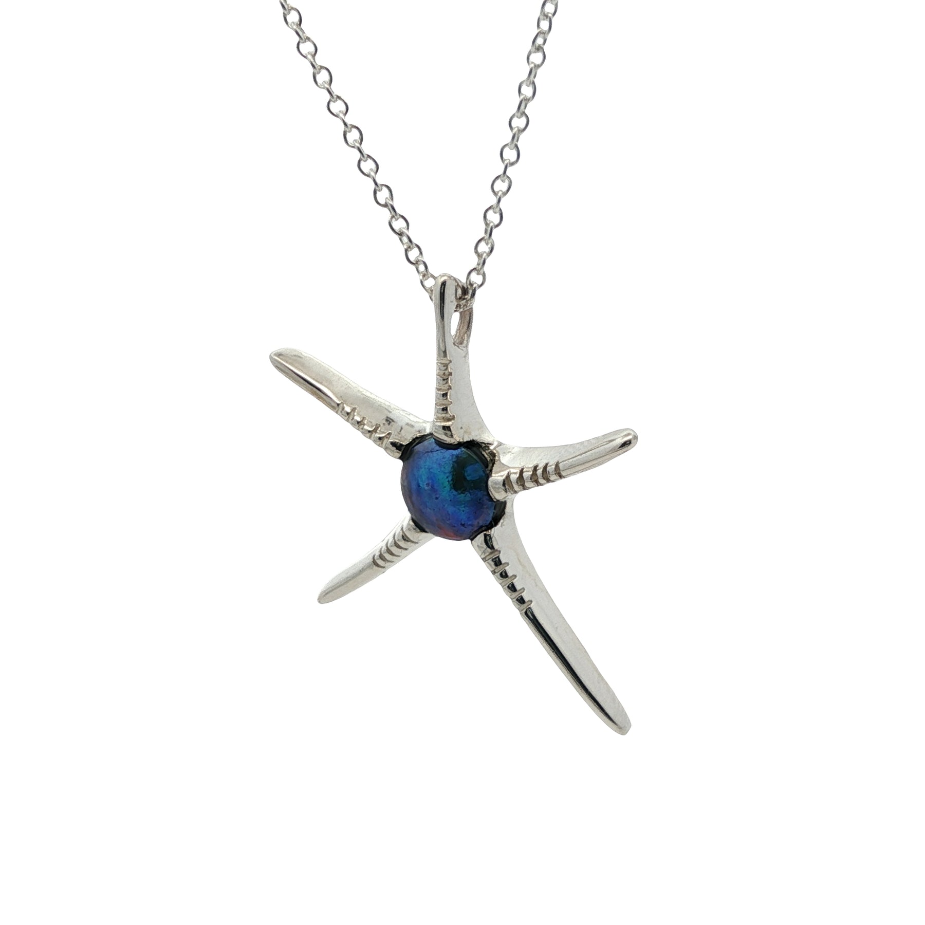 Now, suspended from a simple, elegant Sterling Silver Starfish Necklace, this blue pearl necklace becomes something timeless: a piece that catches light, shifts colour, and carries the quiet beauty of Arapaoa Island wherever you go.