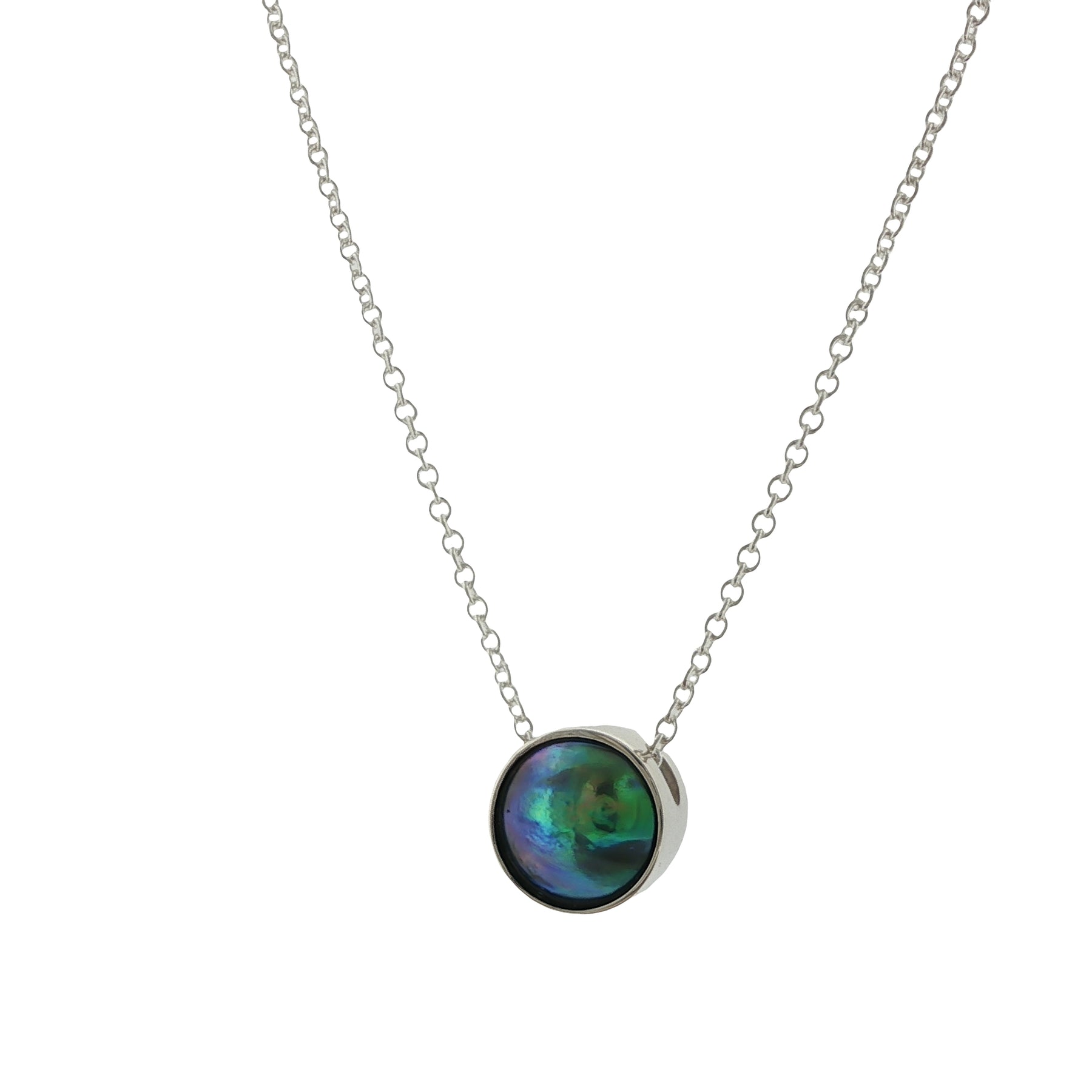 Sterling Silver Paua Pearl Glow Moon Necklace