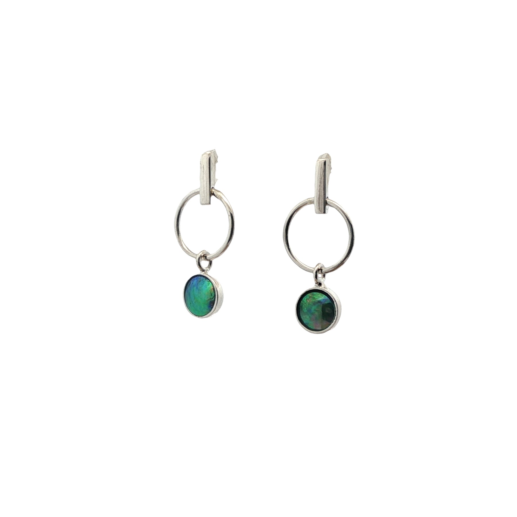 Each paua pearl is unique; no two share the same colour pattern or iridescence. These handcrafted pearl earrings features a hand-selected pearl displaying rich ocean blues, coastal greens, and flashes of rainbow overtones that dance as you move. Grown with patient precision over eight years, each pearl's beauty is unrepeatable, shaped by time, nacre, and the paua's natural response to our carefully placed inserts.