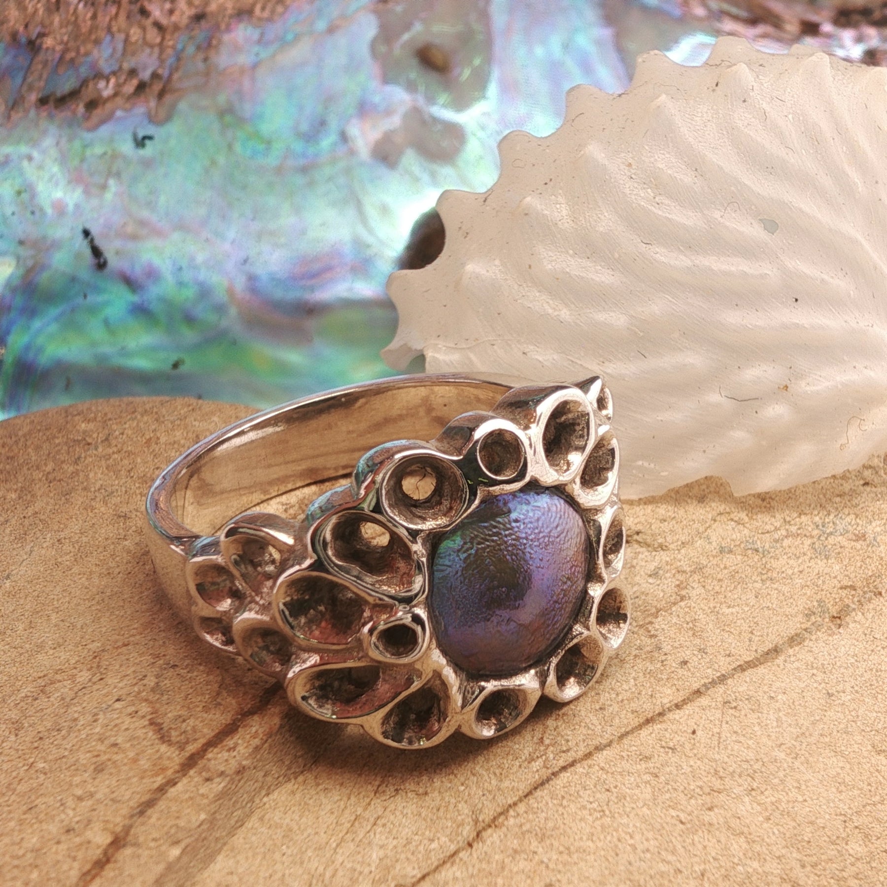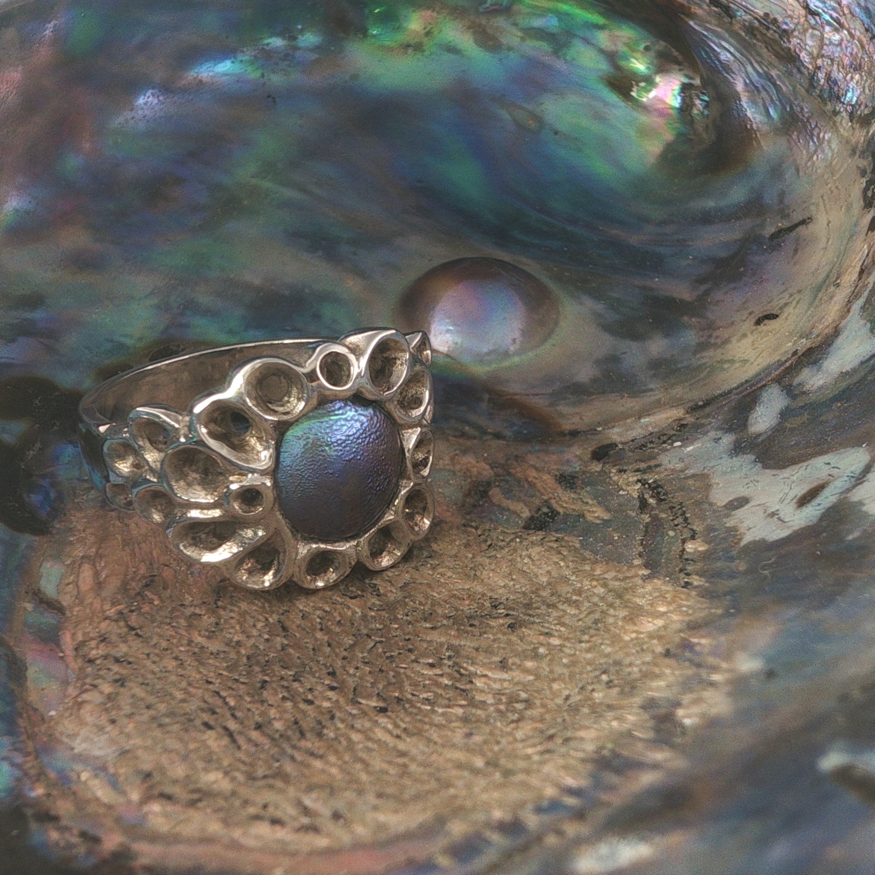 Now set in a simple, elegant Sterling Silver Coral Ring, this blue pearl ring becomes something timeless, a piece that catches the light, shifts in colour, and carries the quiet beauty of Arapaoa Island with you, always.