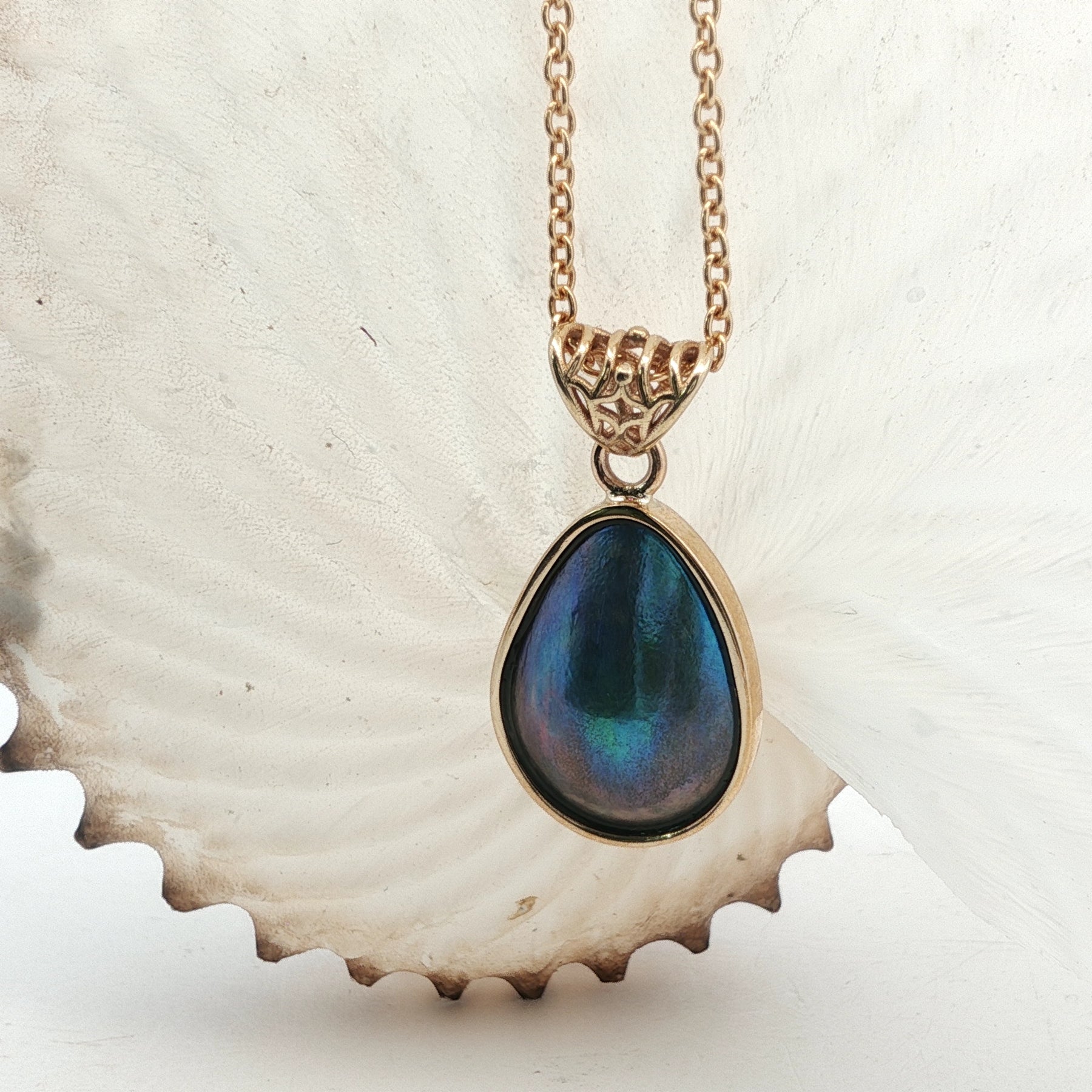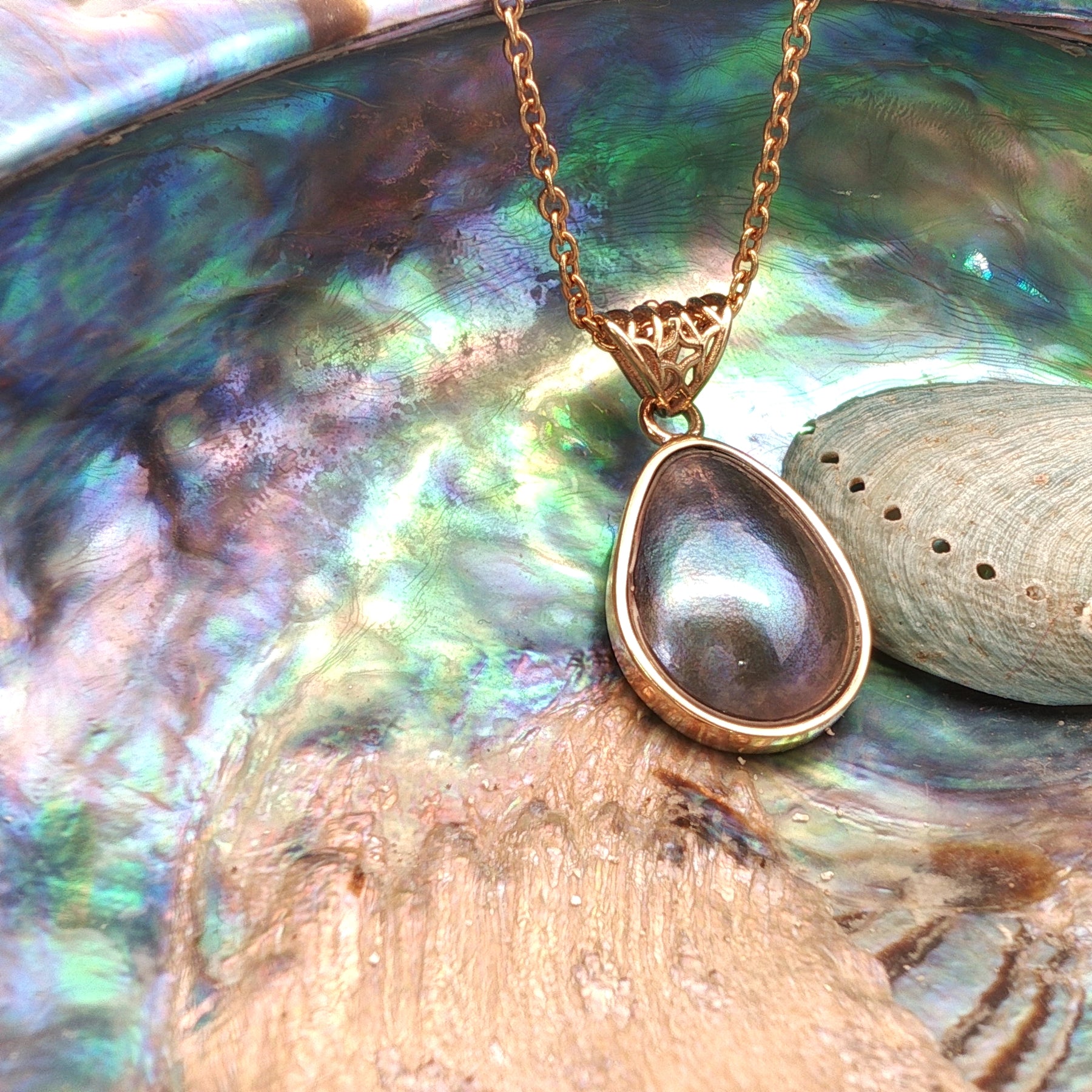 Now, suspended from a simple, elegant 9ct Yellow Gold Marcella Teardrop Necklace, this blue pearl necklace becomes something timeless: a piece that catches light, shifts colour, and carries the quiet beauty of Arapaoa Island wherever you go.