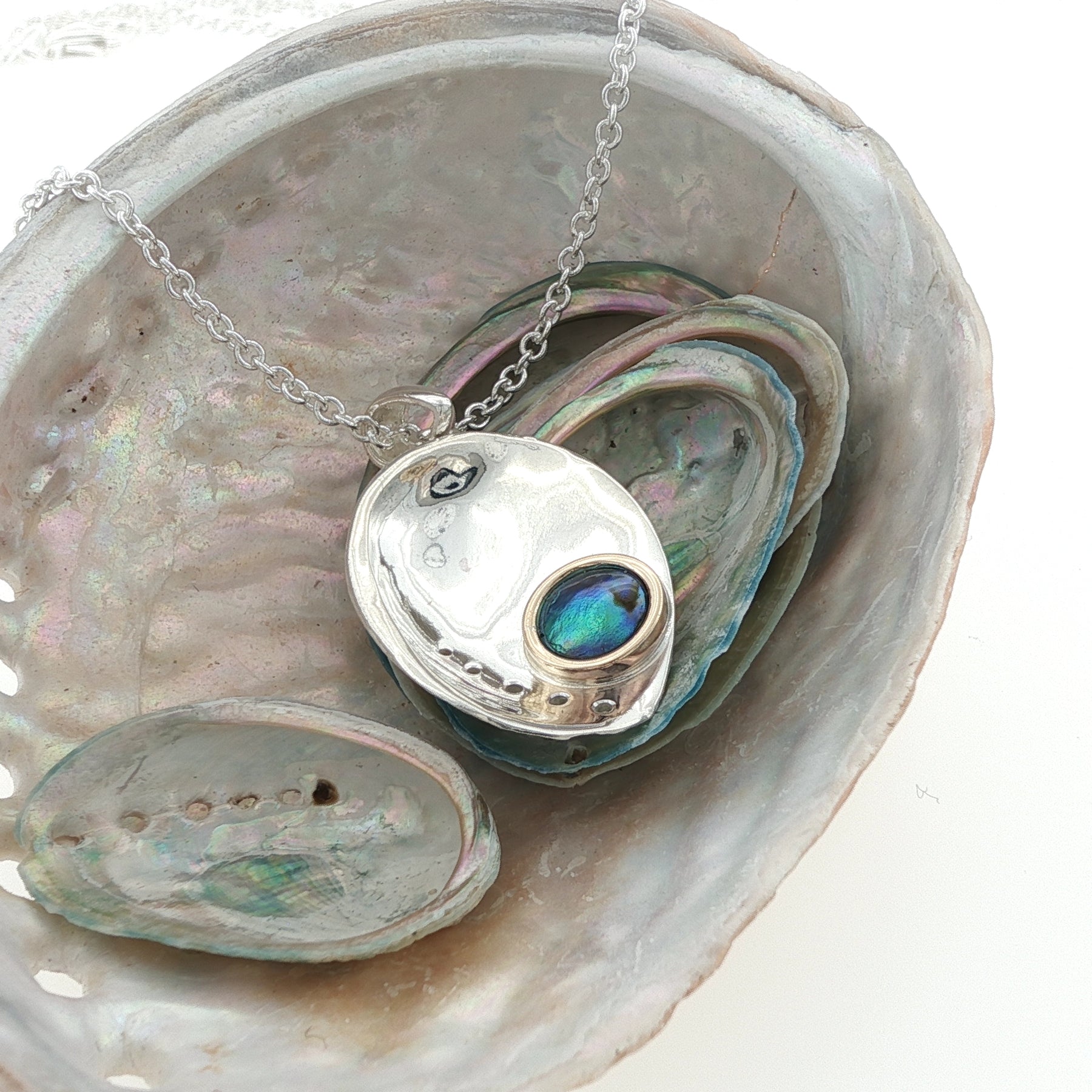 - Genuine Arapawa blue pāua pearl, naturally coloured